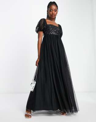 Asos kleid schwarz glitzer Clearance, Maya – Zartes, langes Babydoll-Kleid in Schwarz mit Paillettenbesatz und Puffärmeln Clearance