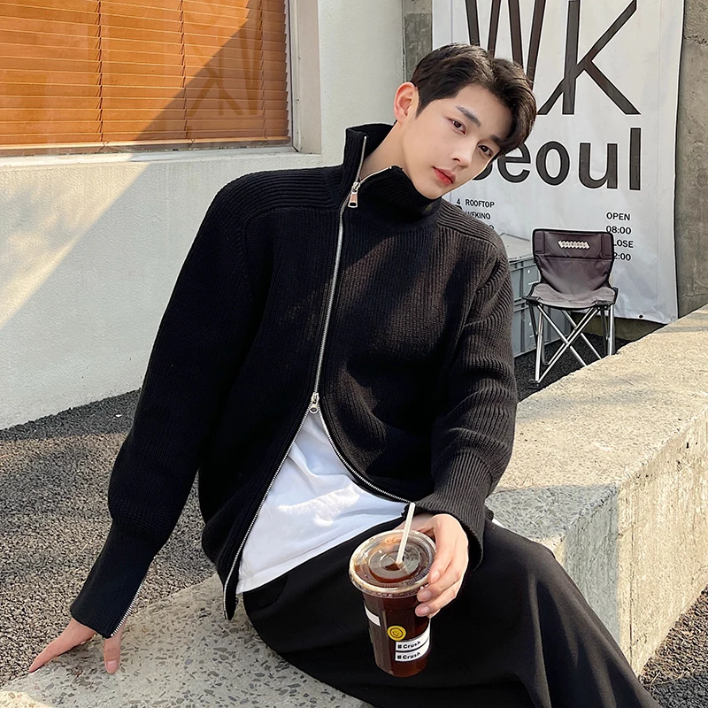 Rollkragen zipper Clearance, Schräge Zipper Rollkragen Strickjacke Pullover für Männer Frauen Japan Koreanische Streetwear Fashion Casual Pullover Mantel Mann Stricken Jacke Clearance