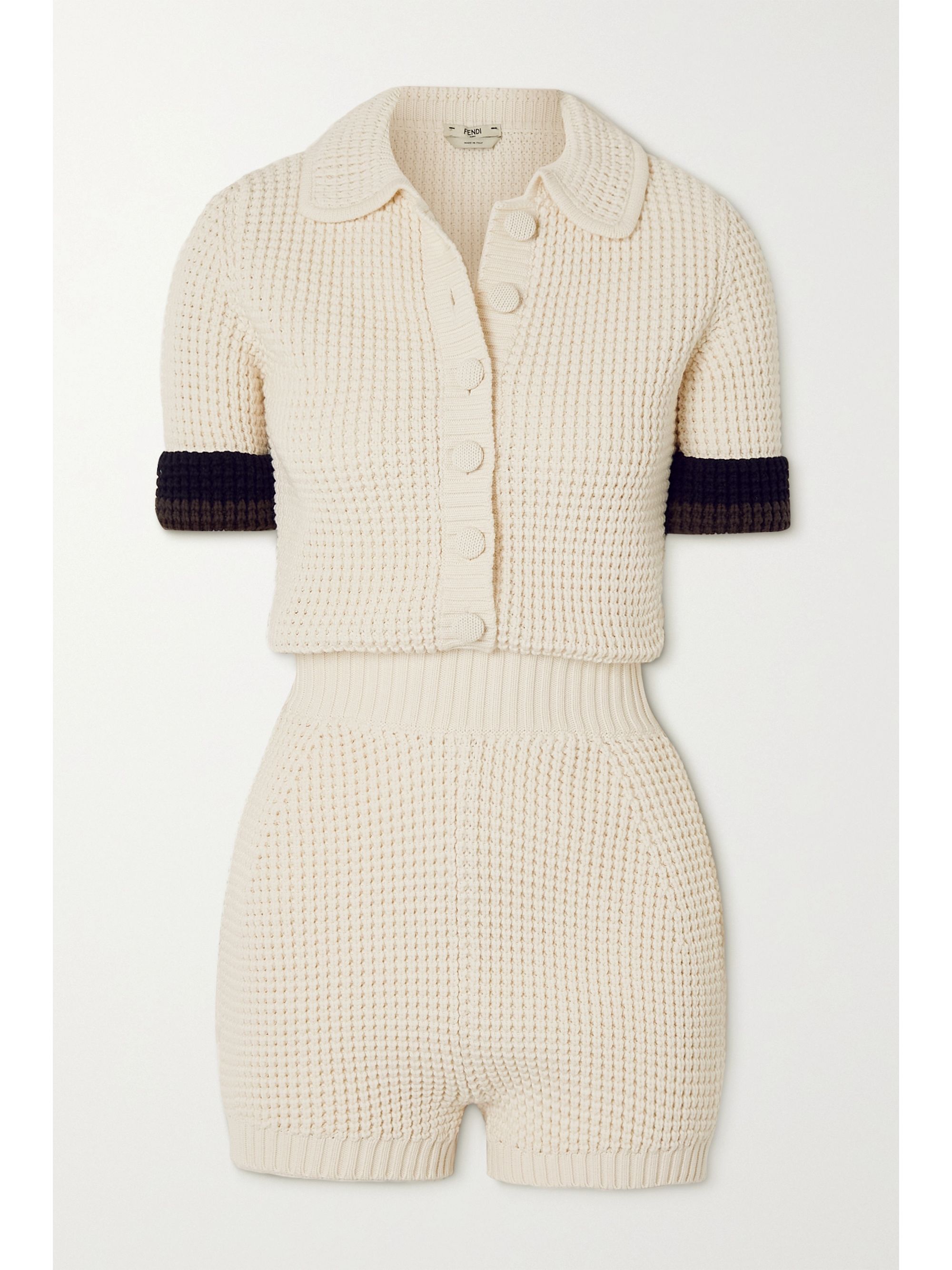 Fendi playsuit Clearance, White Striped knitted playsuit | FENDI Clearance