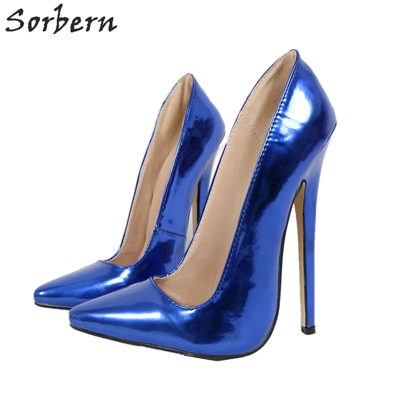 Blue slip on heels Clearance, Sorbern Blue Shoes High Heels Pump Clearance