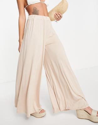 Cream beach pants Clearance, ASOS DESIGN jersey palazzo beach pants Clearance