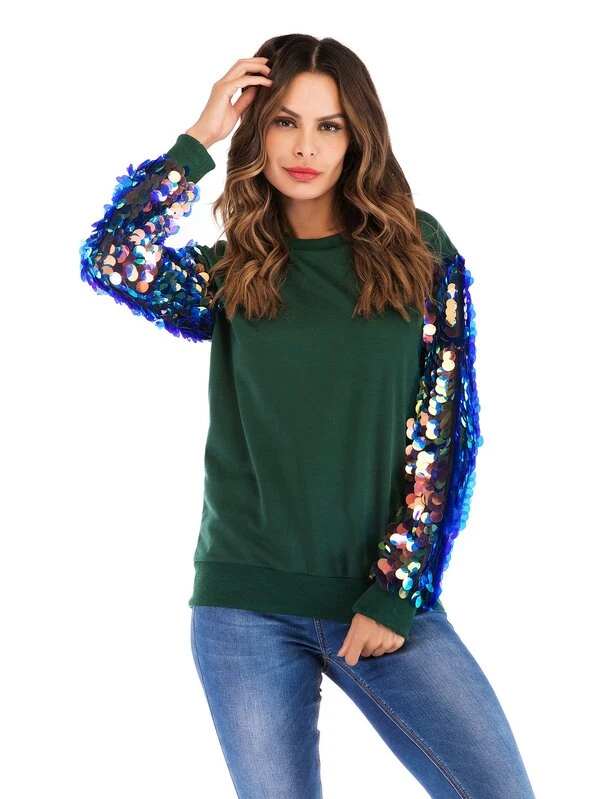 - Contrast sequin sweatshirt free shipping