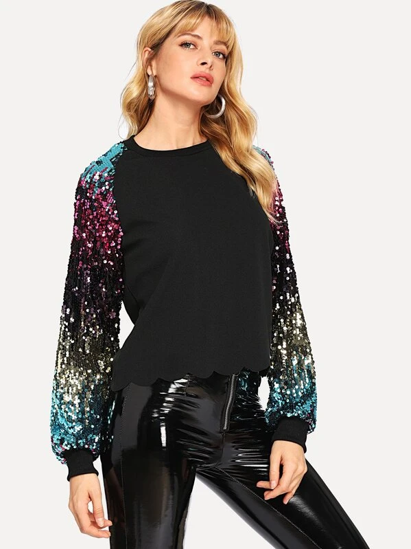 - Shopping Contrast sequin sweatshirt
