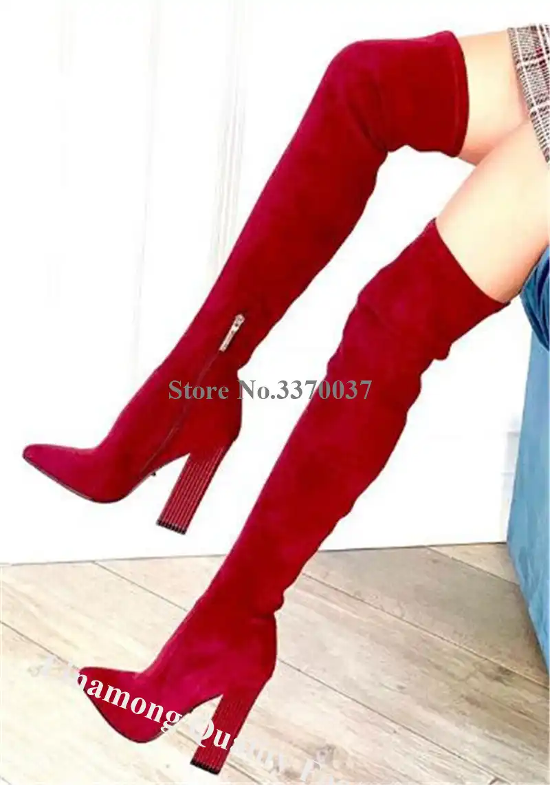 Red chunky heel boots Clearance, Red Platform Boots Fashion Chunky Heel Clearance