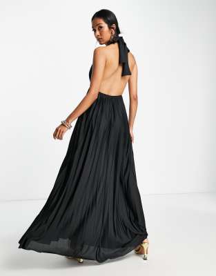 Asos schwarzes langes kleid Clearance, ASOS DESIGN – Langes, plissiertes Neckholder-Kleid in Schwarz Clearance