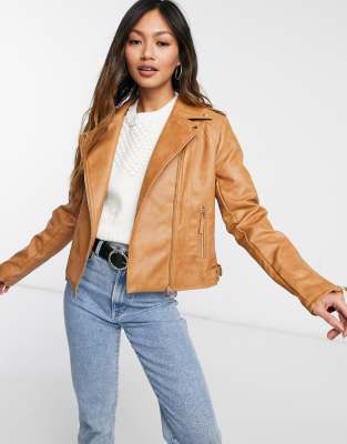 - Tan leather look jacket sale online