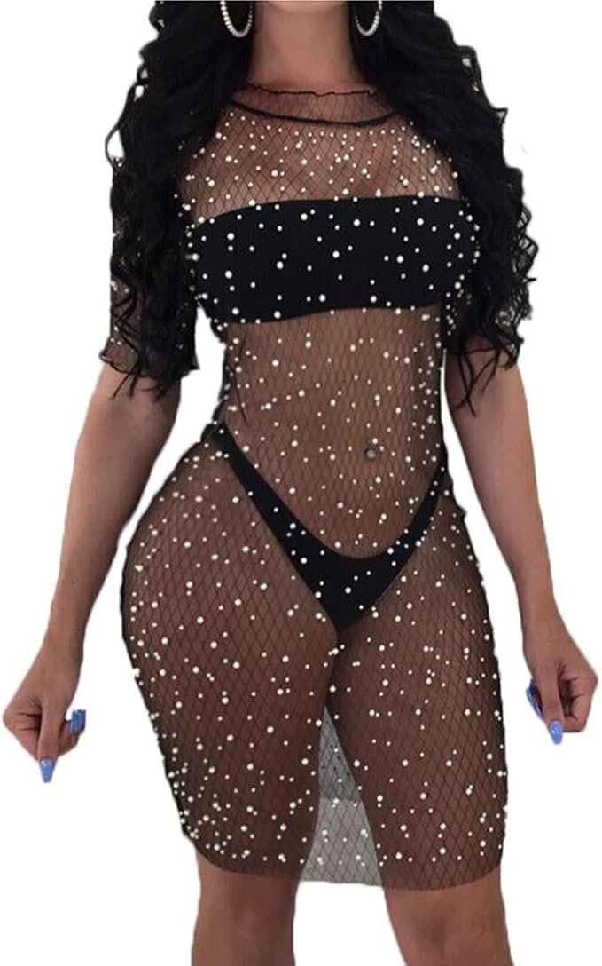 Sparkly swimsuit cover up Clearance, Women Sexy See Through Black Glitter Clearance