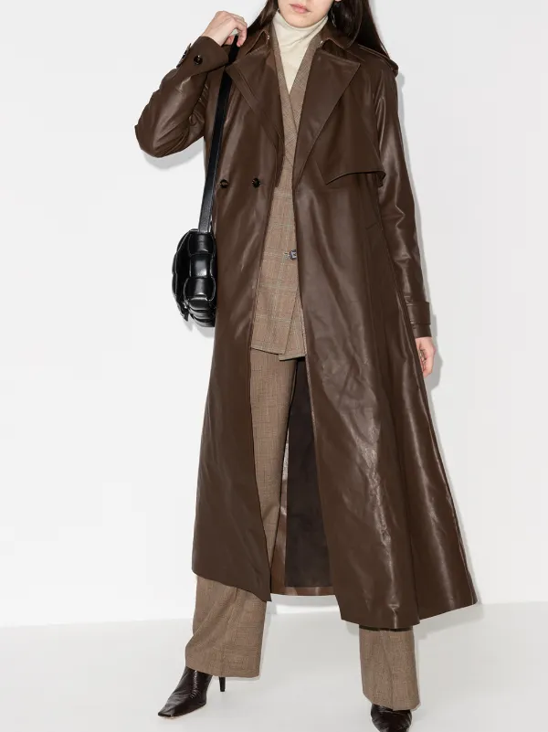 - Long brown leather trench coat sale online
