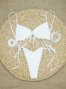 - Frill trim triangle tie side bikini swimsuit
