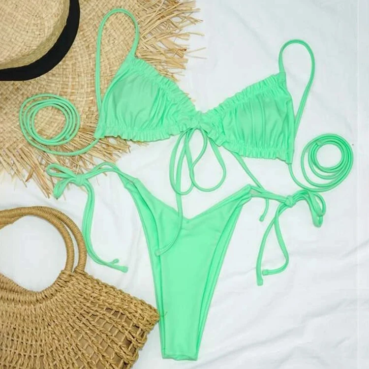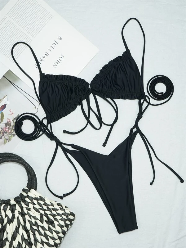 - Frill trim triangle tie side bikini swimsuit outlet