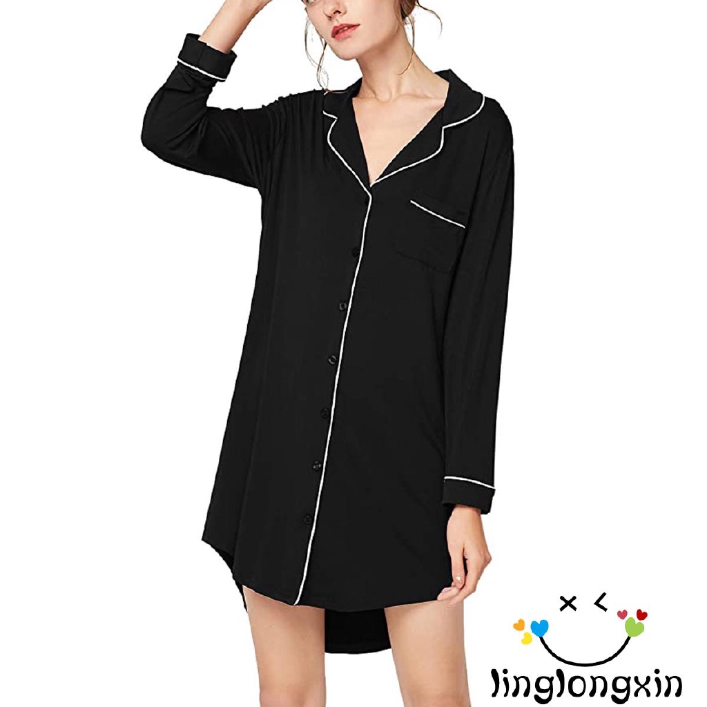 - Shopping Button front silk sleepshirt