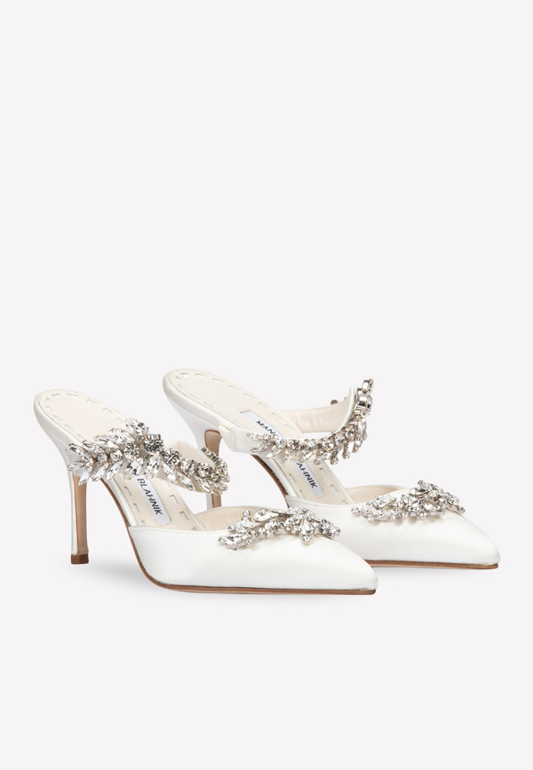 Manolo blahnik lurum white Clearance, Off-White Satin Crystal Embellished Clearance