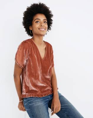 - Velvet ruffle sleeve top shop