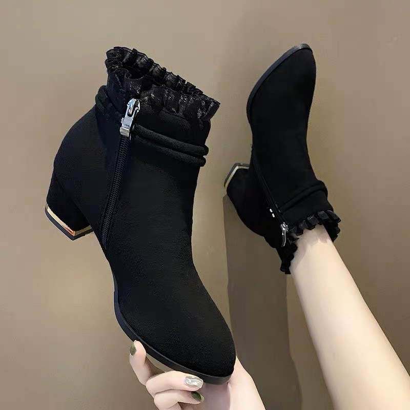Black fashion boots Clearance, Korean Fashion Boots Black Suede Block Clearance