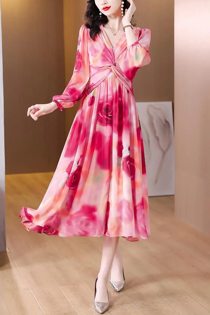 Kleid seide blumen Clearance, Rosa Blumen Seide Strand Midi Kleid Frühling Sommer Lose Kleid Damen Casual Party Kleid Wie Abgebildet 5XL : Amazon.de: Fashion Clearance