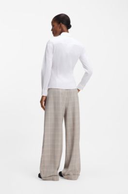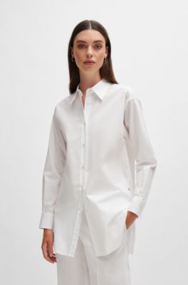 Weiße bluse damen hugo boss Clearance, BOSS - Regular-Fit Bluse aus elastischer Baumwoll-Popeline Clearance