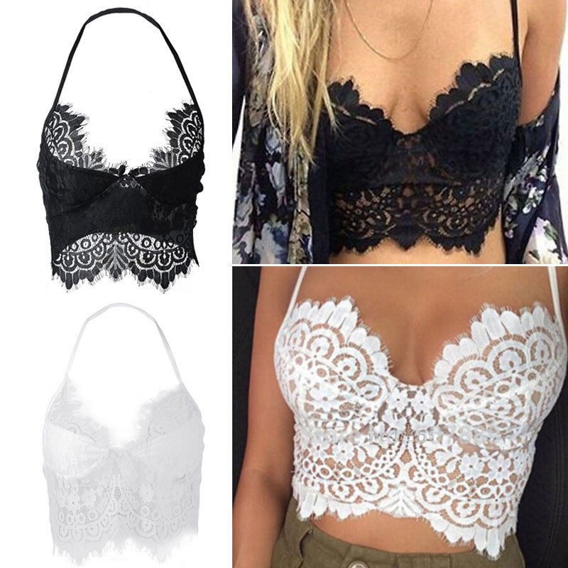 Tube top with halter bralette Clearance, Womens Fashion Floral Lace Halter Clearance