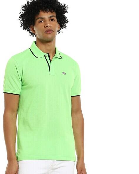 Tipped pique polo shirt Clearance, ARROW Tipped Pique Polo T-shirt with Ribbed Hems For Men (Green, M) Clearance