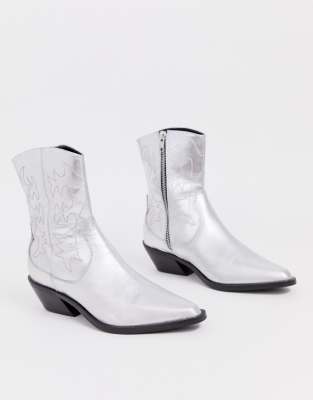 Asos silver boots Clearance, ASOS DESIGN Autumnal leather cowboy Clearance