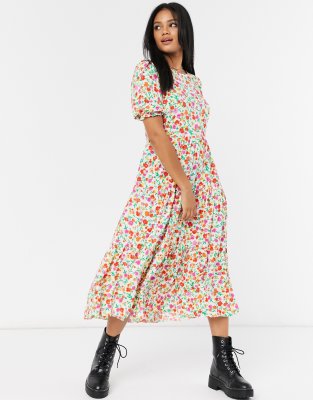 - Floral smock midi dress shop