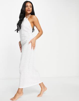 Strandkleid strick weiß Clearance, ASOS DESIGN – Maxi-Strandkleid aus leichtem Strick in Weiß mit Chevron-Zickzackmuster | ASOS Clearance