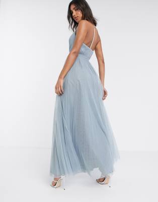 Dusty blue embellished dress Clearance, ASOS DESIGN embellished trim plunge Clearance