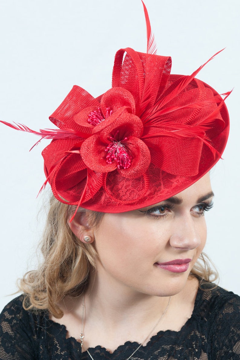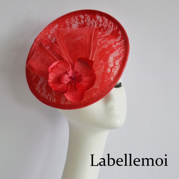 Red lace fascinator Clearance, NEW Red Lace Fascinator Sinamay Hat Clearance