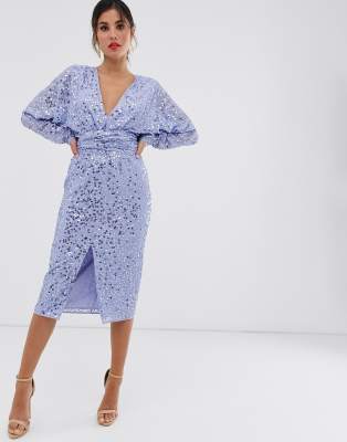 - Midi dress with batwing sleeve and wrap waist in scatter sequin shop