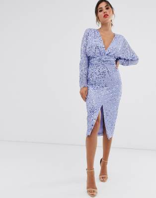 - Midi dress with batwing sleeve and wrap waist in scatter sequin sale online
