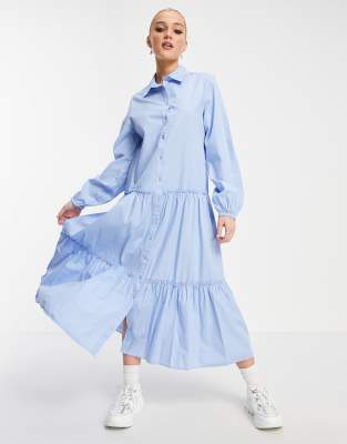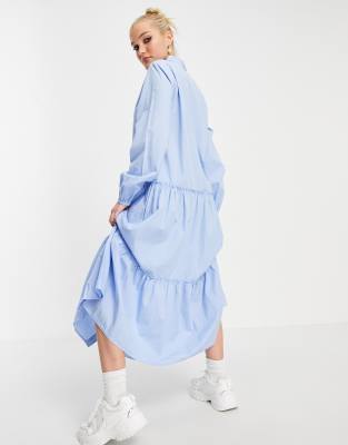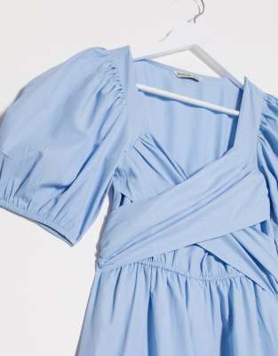 - Stradivarius midi poplin dress with belt in blue clearance
