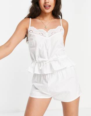White cami and short set Clearance, White Lace Trim Cami And Shorts Pyjama Clearance