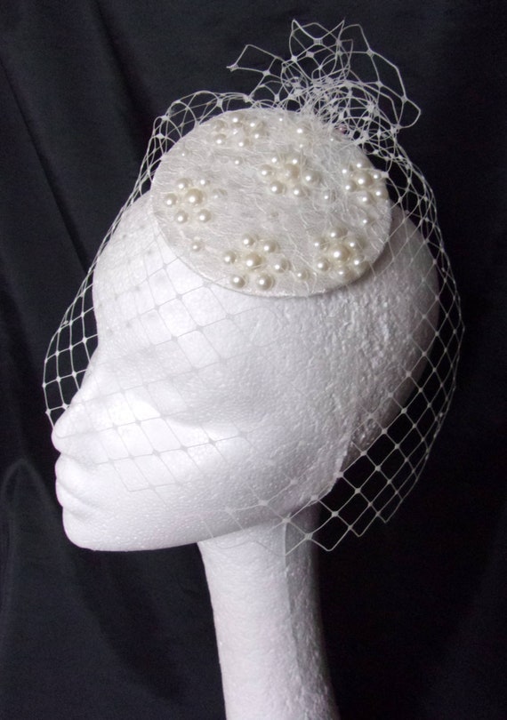 White pearl fascinator Clearance, faux pearl trim bridal fascinator Clearance