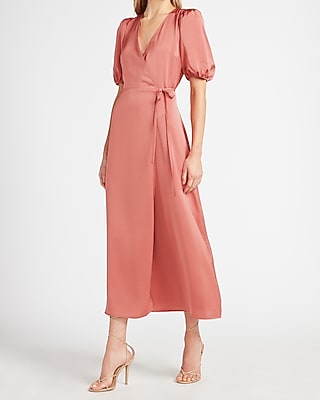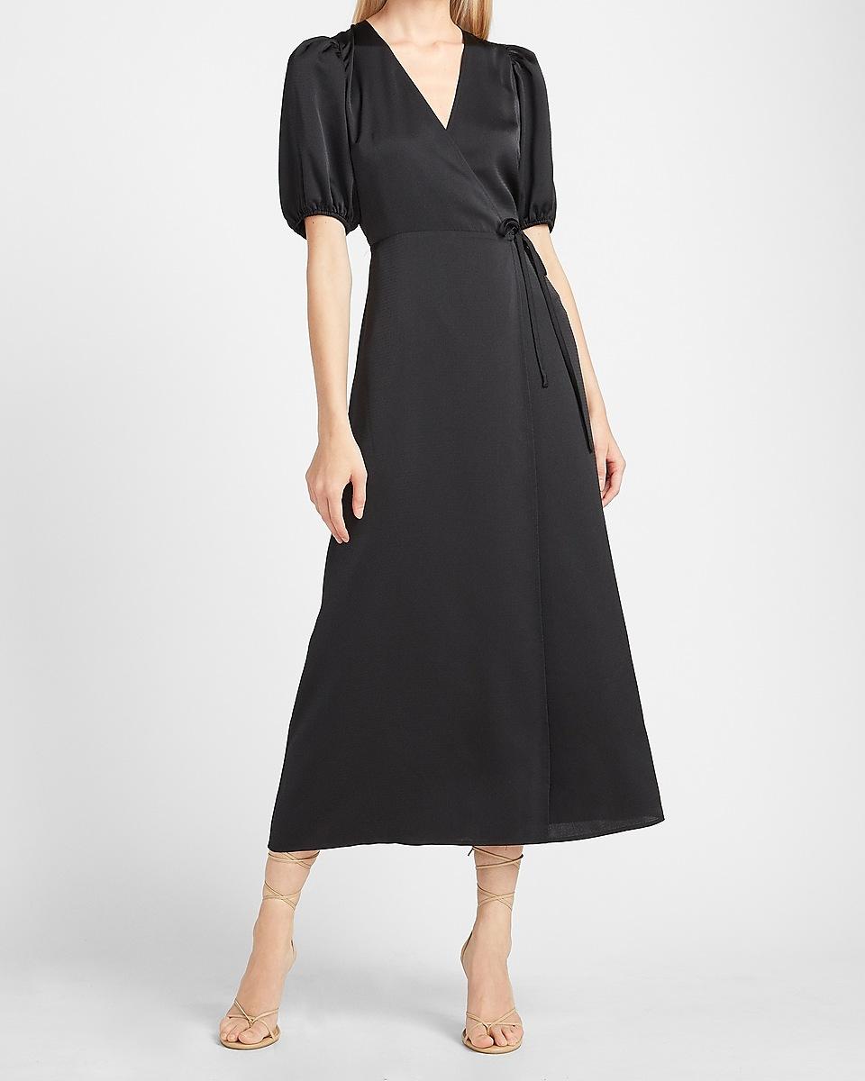 - Satin puff sleeve belted wrap maxi dress sale