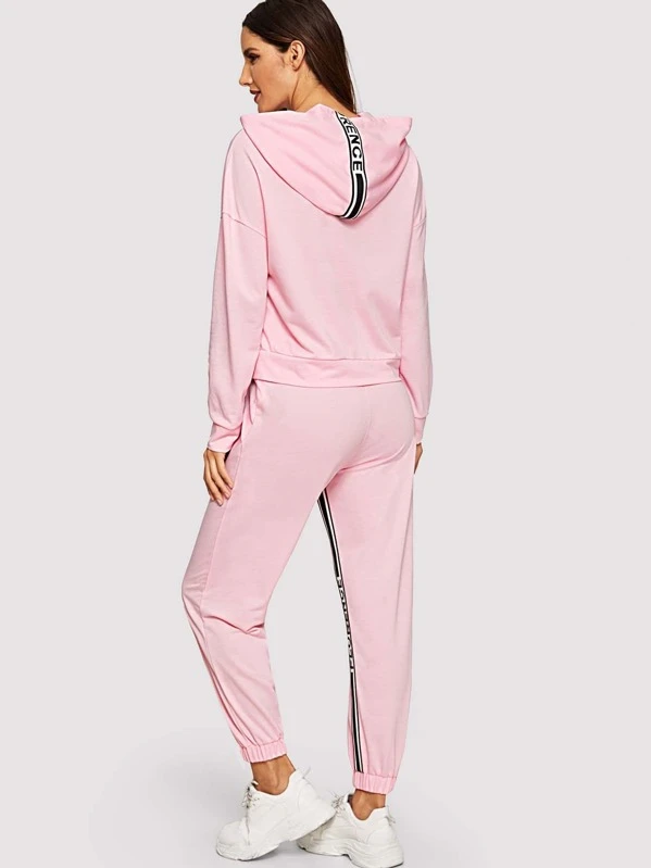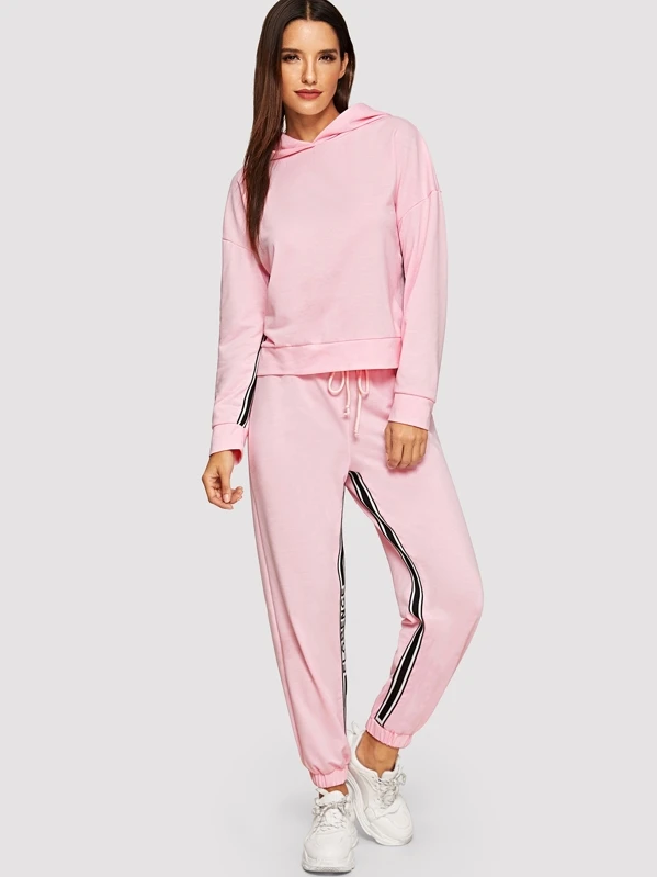 Shein pink tracksuit Clearance, Romwe Raglan Sleeve Striped Hoodie And Clearance
