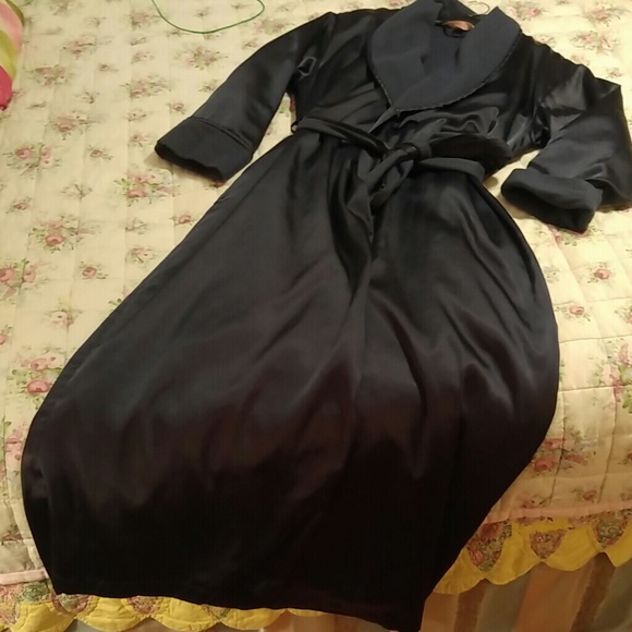 - Long satin robe with fleece lining