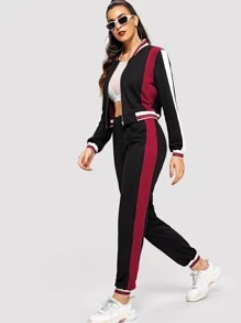 Shein tracksuit pants Clearance, SHEIN Zip Up Contrast Panel Jacket Clearance