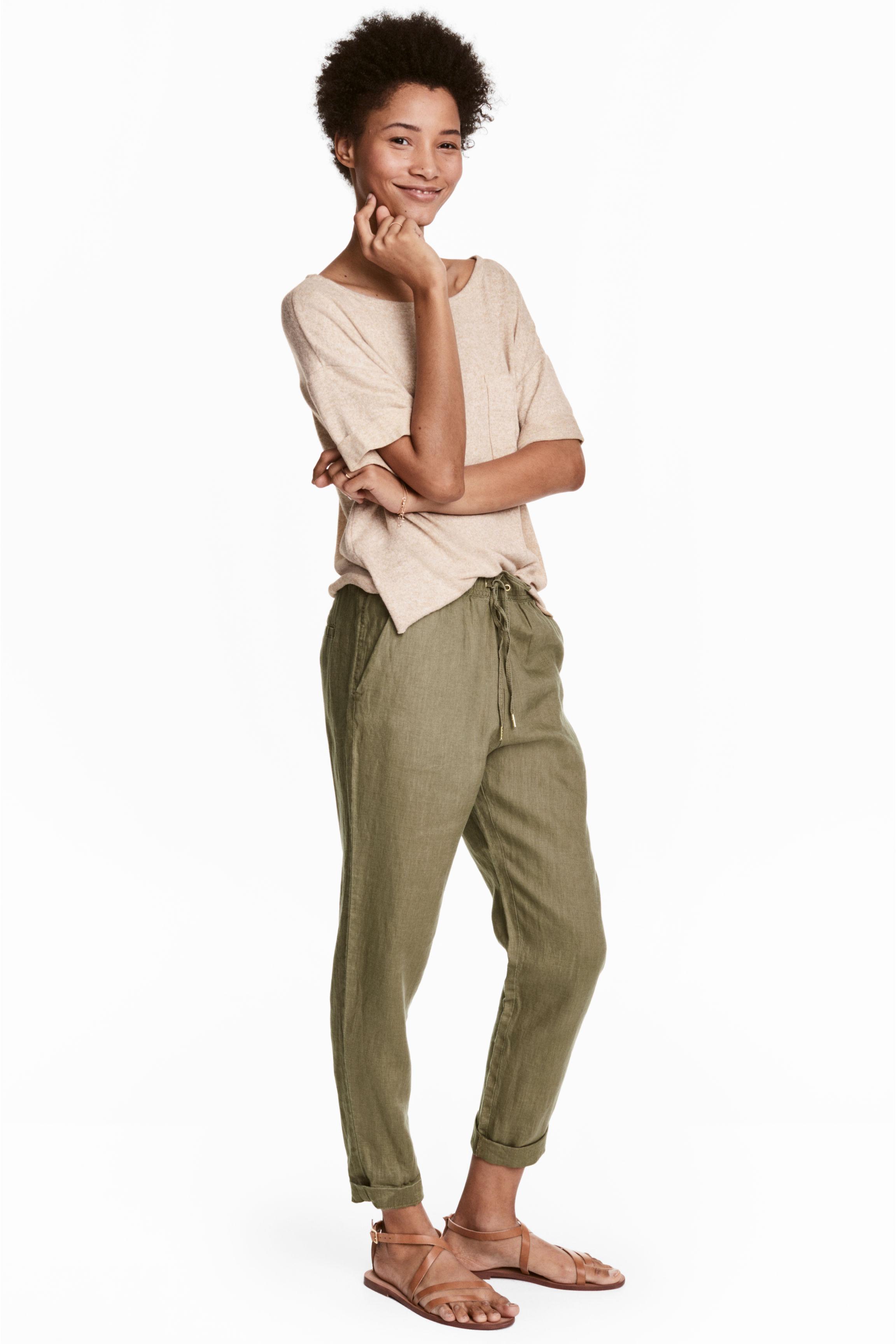 Khaki linen joggers Clearance, The H\u0026M Linen Pants Everyone Is Buying Clearance