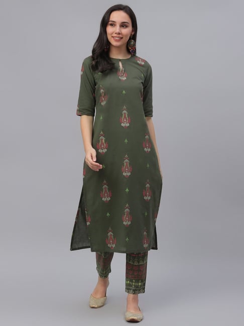 Green kurta pant set Clearance, Buy Ambraee Green Kurta With Pant And Clearance