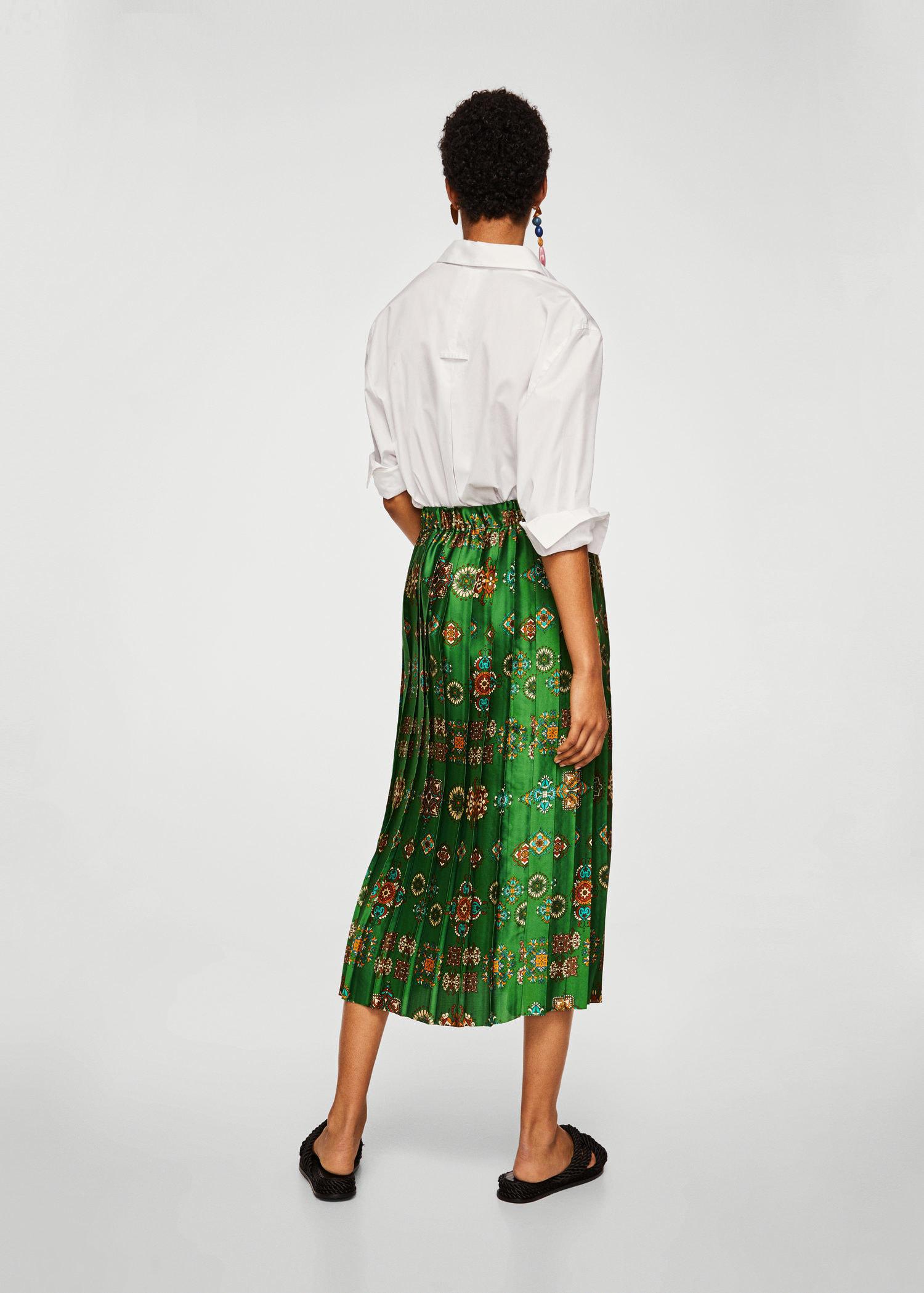Green patterned skirt Clearance, Mango Satin Printed Pleated Skirt in Clearance