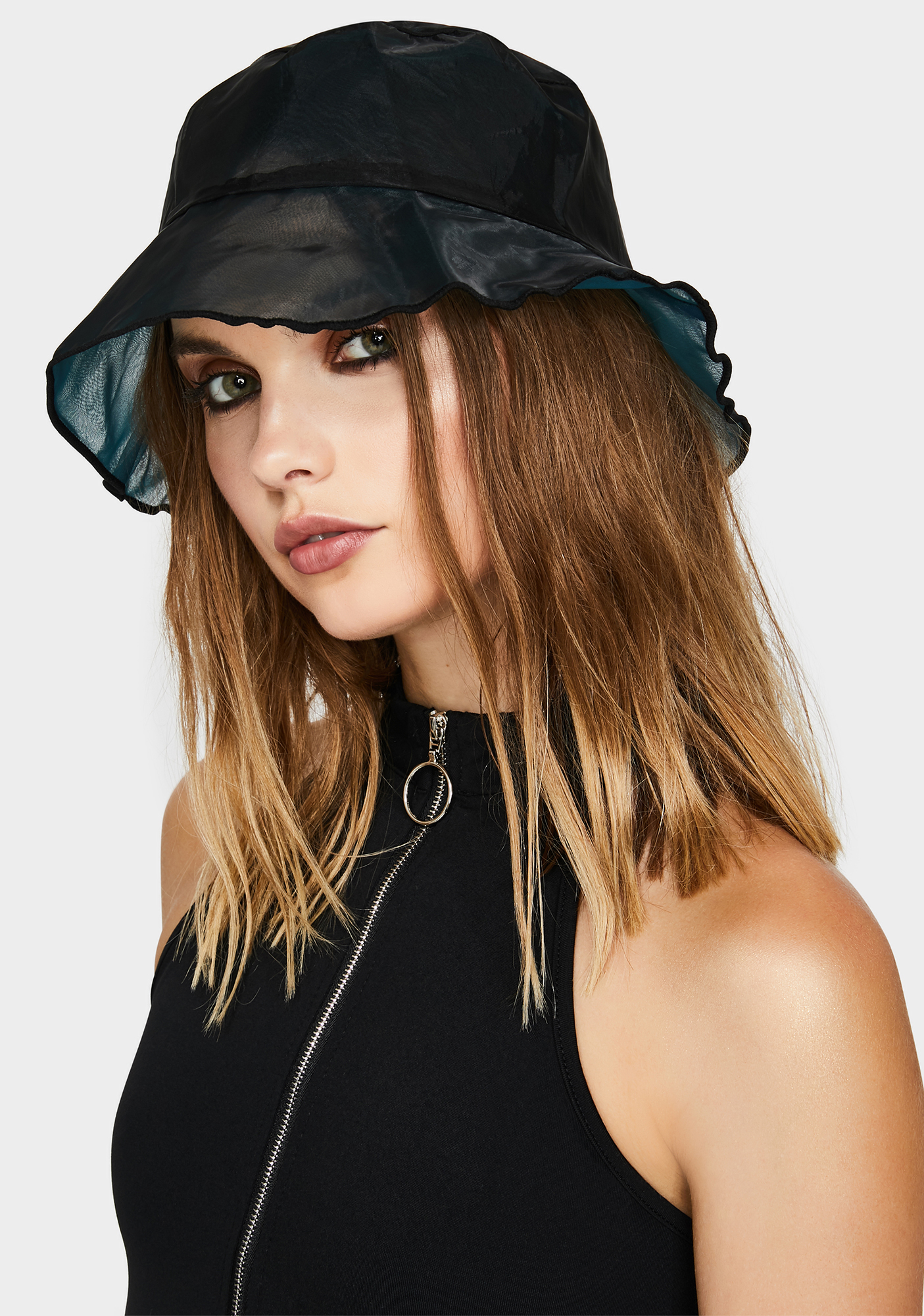 - Sheer black bucket hat