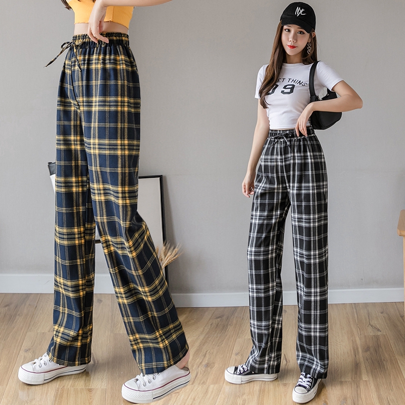 Plaid pants shopee Clearance, Plaid pants women's wide leg pants 2020 Clearance