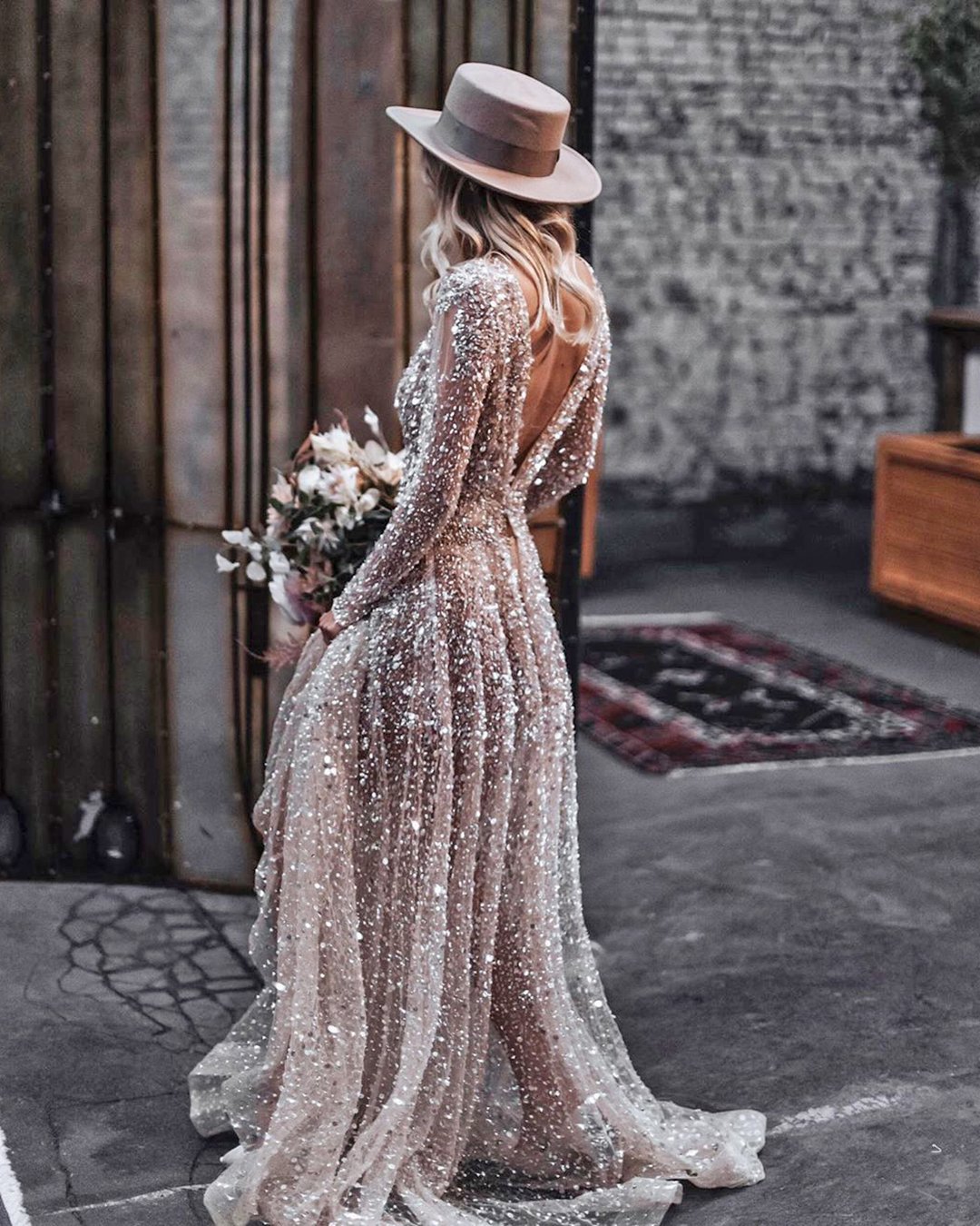 - Long sleeve sequin wedding dress