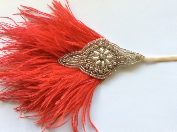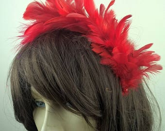 Red feather headband Clearance, Vintage Women Fancy Dress Fascinator Clearance