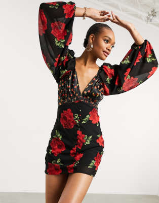 Mini dress with balloon sleeves Clearance, Jasmine Balloon Sleeve Mini Dress Clearance