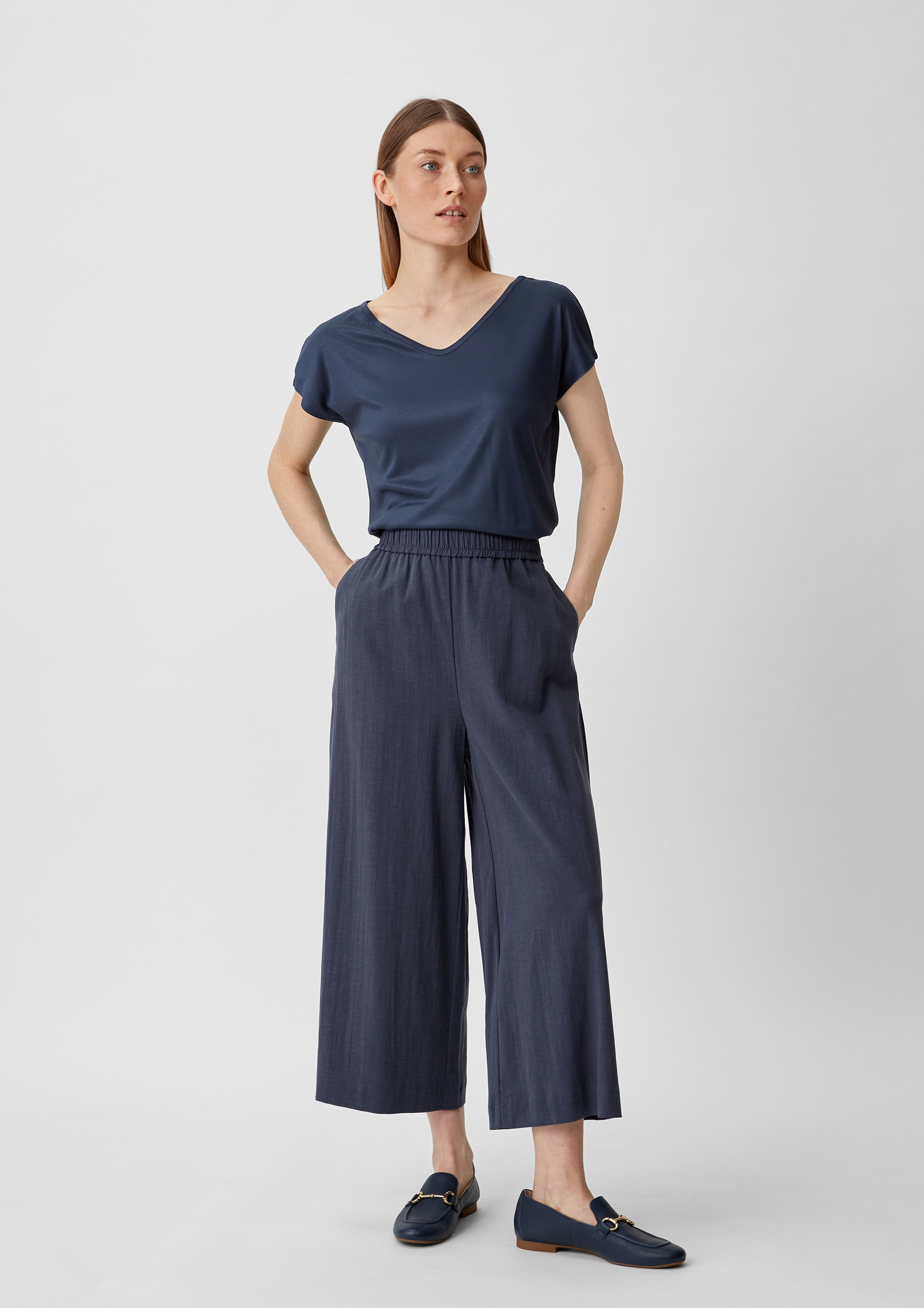 Comma culotte blau Clearance, Culotte aus Lyocellmix mit Bindegürtel - dunkelblau | Comma Clearance