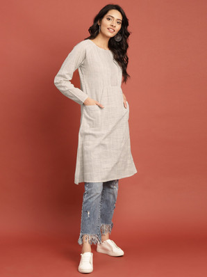 Taavi kurti Clearance, Buy Taavi Women Grey Woven Design Ikat Clearance