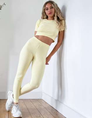 - Yellow ribbed leggings shop