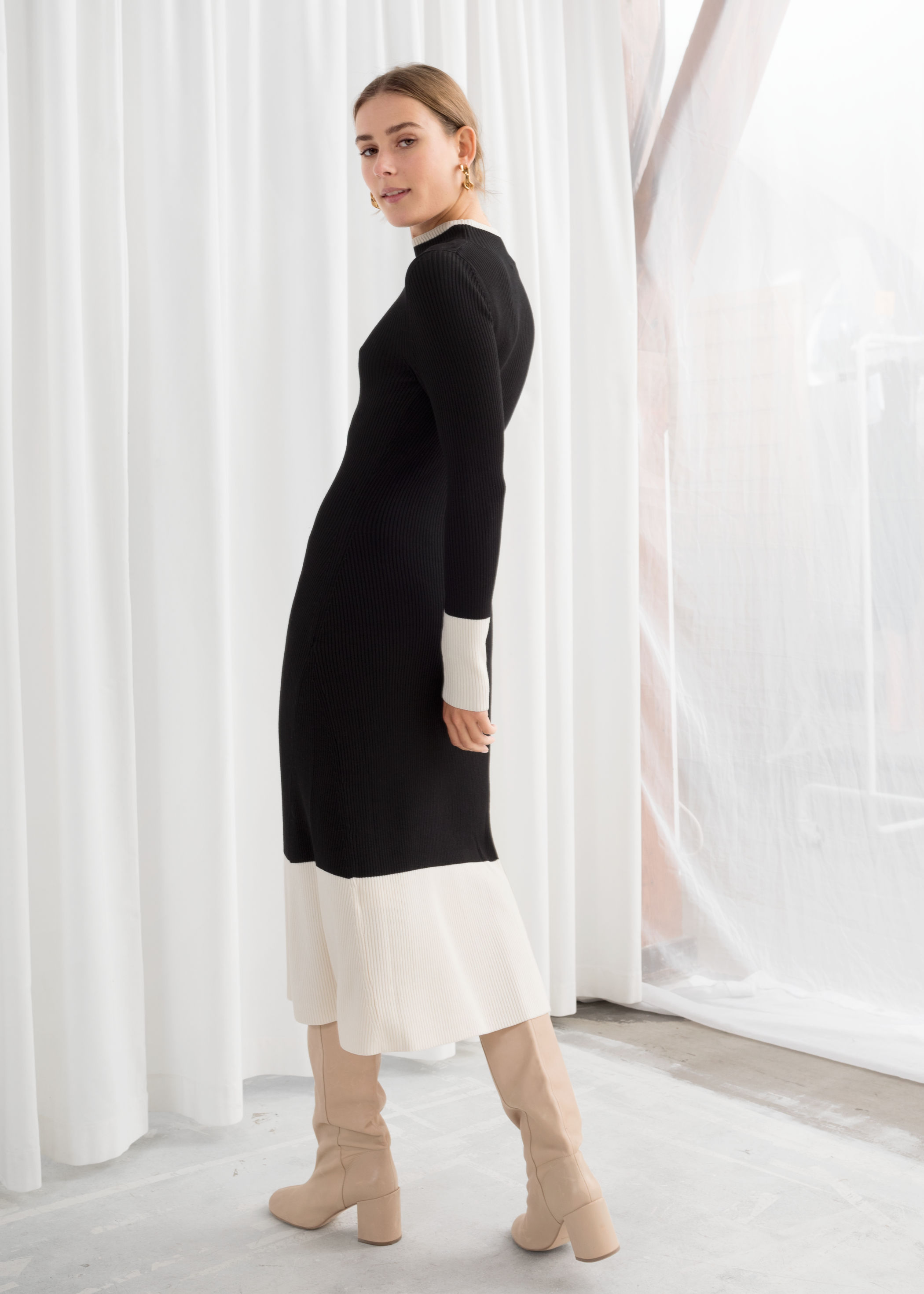 - Ribbed turtleneck midi dress shop