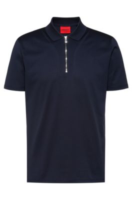 Hugo boss slim fit mercerised polo Clearance, HUGO - Zip-neck slim-fit polo shirt in mercerised cotton Clearance