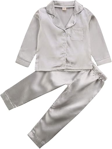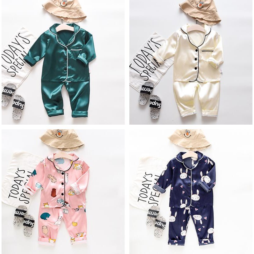 Pijama infantil seda Clearance, Pijamas de Manga Lapela de Seda Roupa em Casa Terno do Menino Cetim Infantil Clearance